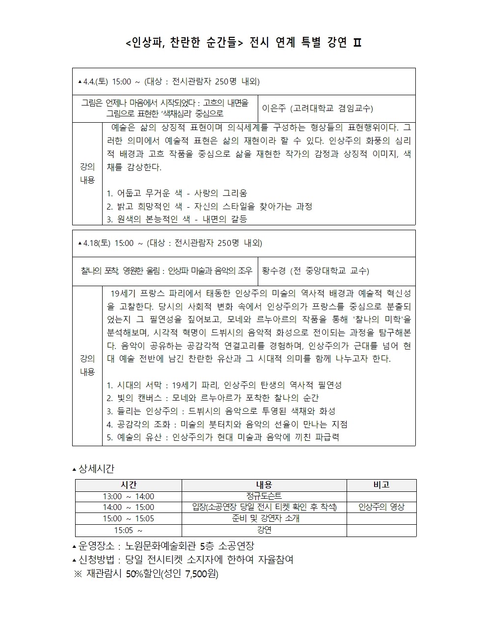 <인상파, 찬란한 순간들> 전시 연계 특별 강연 Ⅱ
