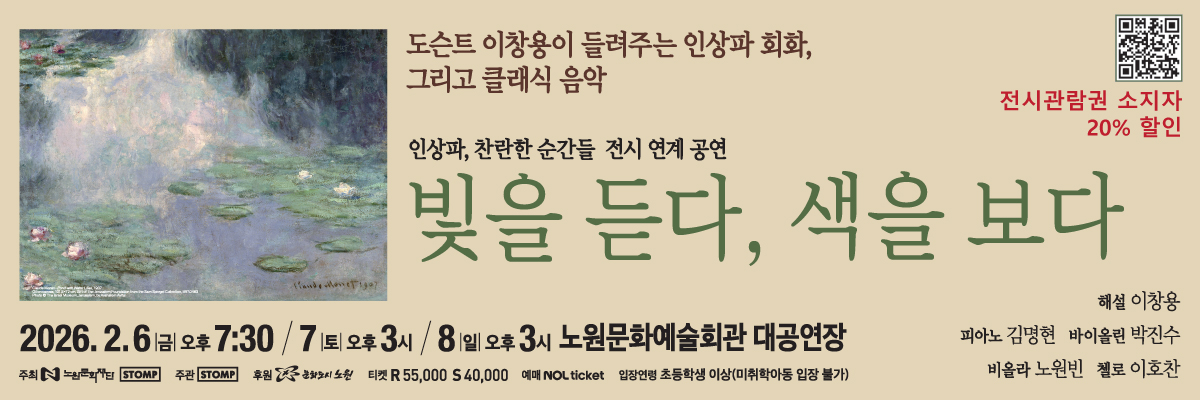 전시연계공연 <빛을 듣다, 색을 보다> 예매안내:https://nowonarts.kr/channels/performance/programs/964