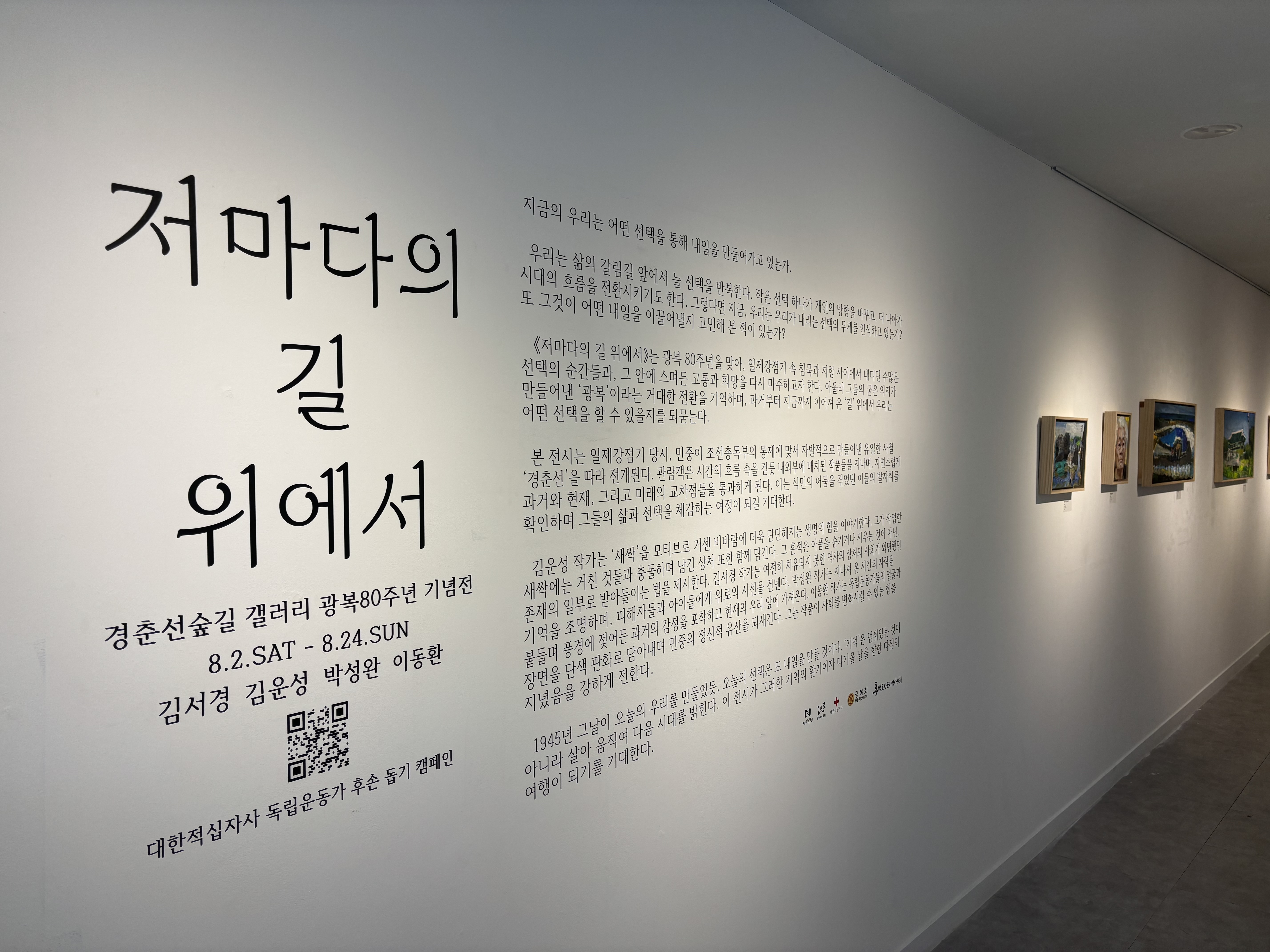 갤러리-전시 2025 경춘선숲길 갤러리 광복 80주년 기념전 <저마다의 길 위에서> 2025.11.17 25 현재 URL 복사 블로그 바로가기 이전글 2025 경춘선숲길 갤러리 엘살바도르 대사관 협력전시<Flower's Memory> 다음글 2025 문화공간 정담 기획전시_<마중물전 : From.>ㅣ25.10.14.~11.1. 목록