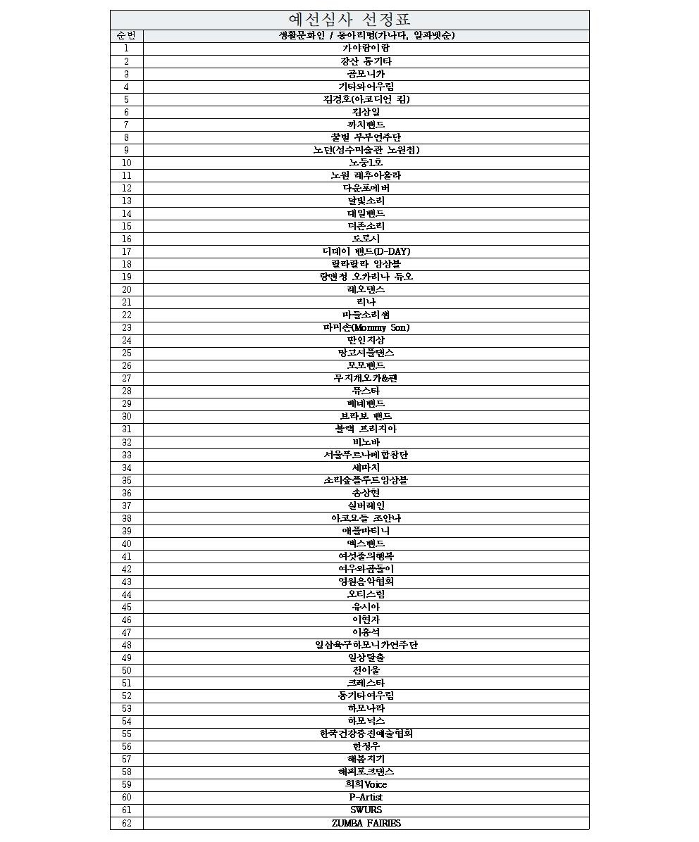 공지사항 <2025 노원스타N> 접수 결과 및 예선 심사 안내 2025.08.15 2,847 현재 URL 복사 블로그 바로가기 첨부파일 #1: 예선심사선정표001.jpg 이전글 2025년 3분기 문화강좌 수강생 모집(2025.8.22.~) 다음글 2025 꿈의 무용단 노원 <예꿈 발레단> 아동·청소년 단원 2차 추가 모집(기간연장)(~8/26) 목록