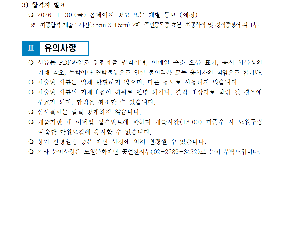 공지사항 2026 노원구립여성합창단 신규단원 모집 2025.12.26 69 현재 URL 복사 블로그 바로가기 첨부파일 #1: 1. 2026 노원구립여성합창단 신규단원 모집 공고문.pdf 첨부파일 #2: 2. 지원서 및 동의서(양식).hwp 이전글 <인상파, 찬란한 순간들> 주차 혼잡 및 공영주차장 이용 안내 다음글 2026 노원구립청소년합창단 신규단원 모집 목록