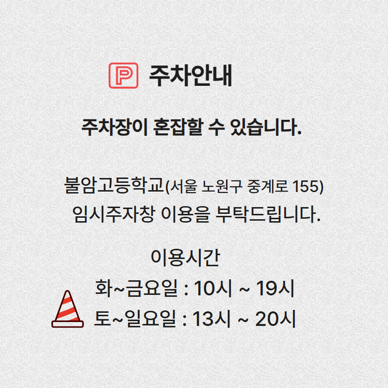 불암고등학교(서울 노원구 중계로 155) 임시주차장 이용을 부탁드립니다.