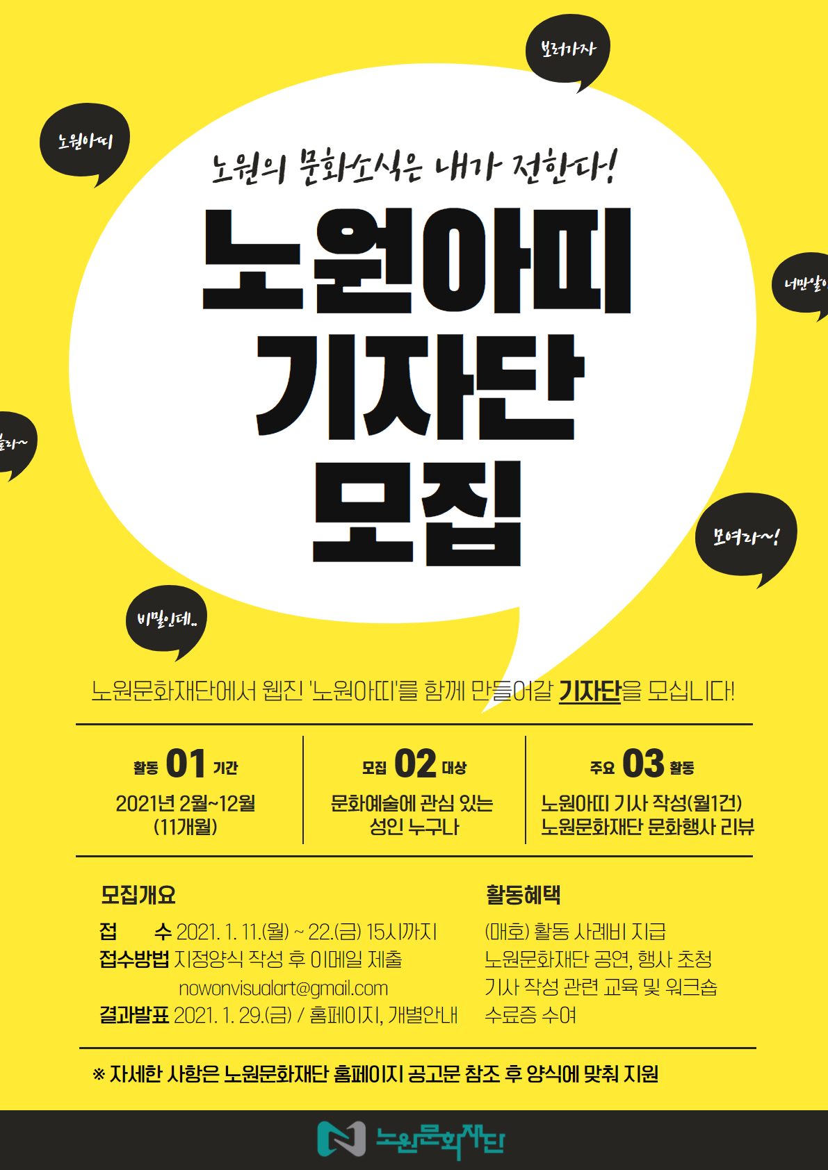 첨부파일 #1: [보도자료] 노원문화재단 웹진 '노원아띠 기자단' 모집 (2021.1.12).hwp