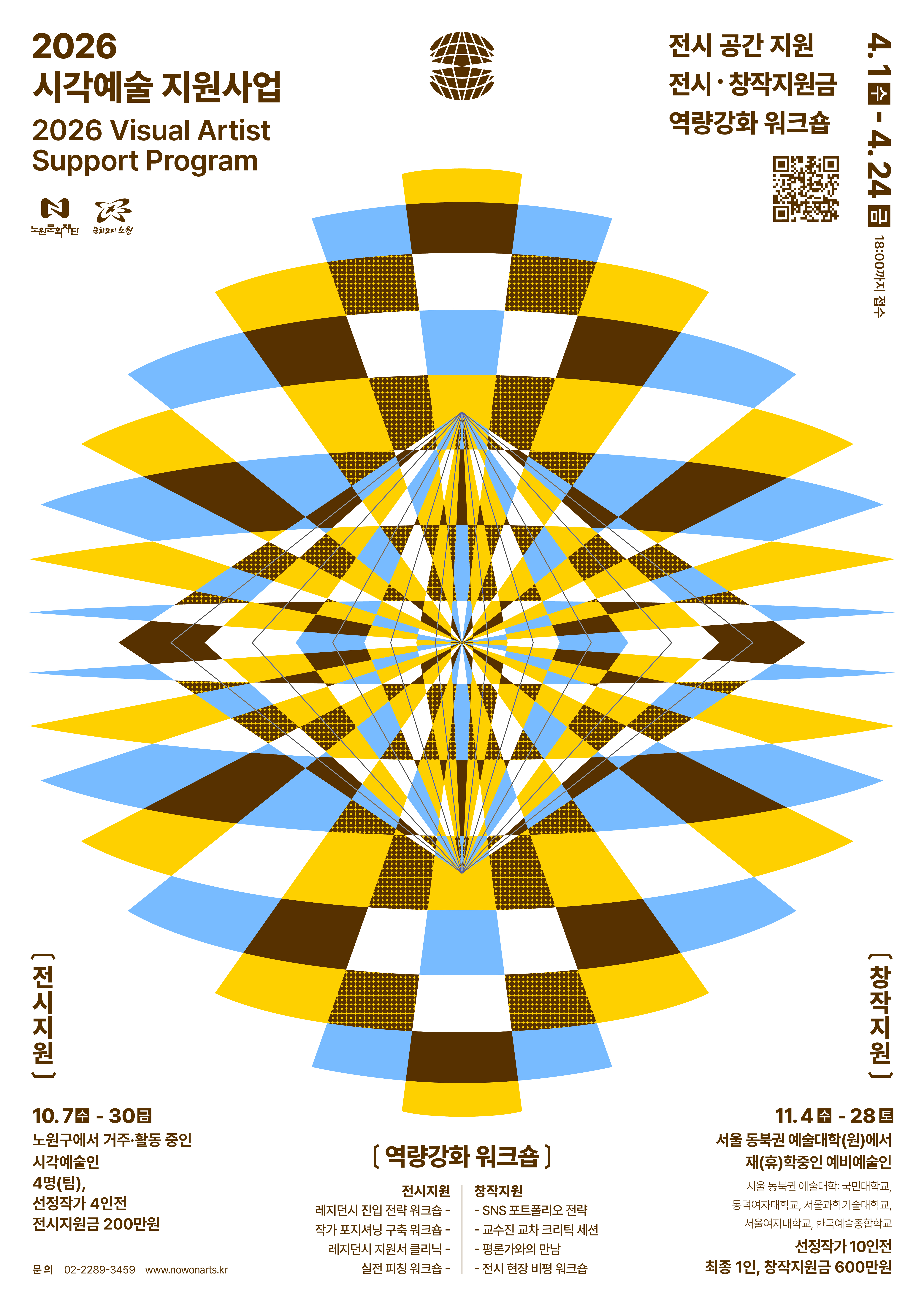 노원문화재단(이사장 강원재)이 지역 시각예술인의 창작 기반을 강화하고, 예비 예술가의 안정적인 예술계 안착을 지원하는 ‘2026 시각예술 지원사업’ 공모를 시작한다.