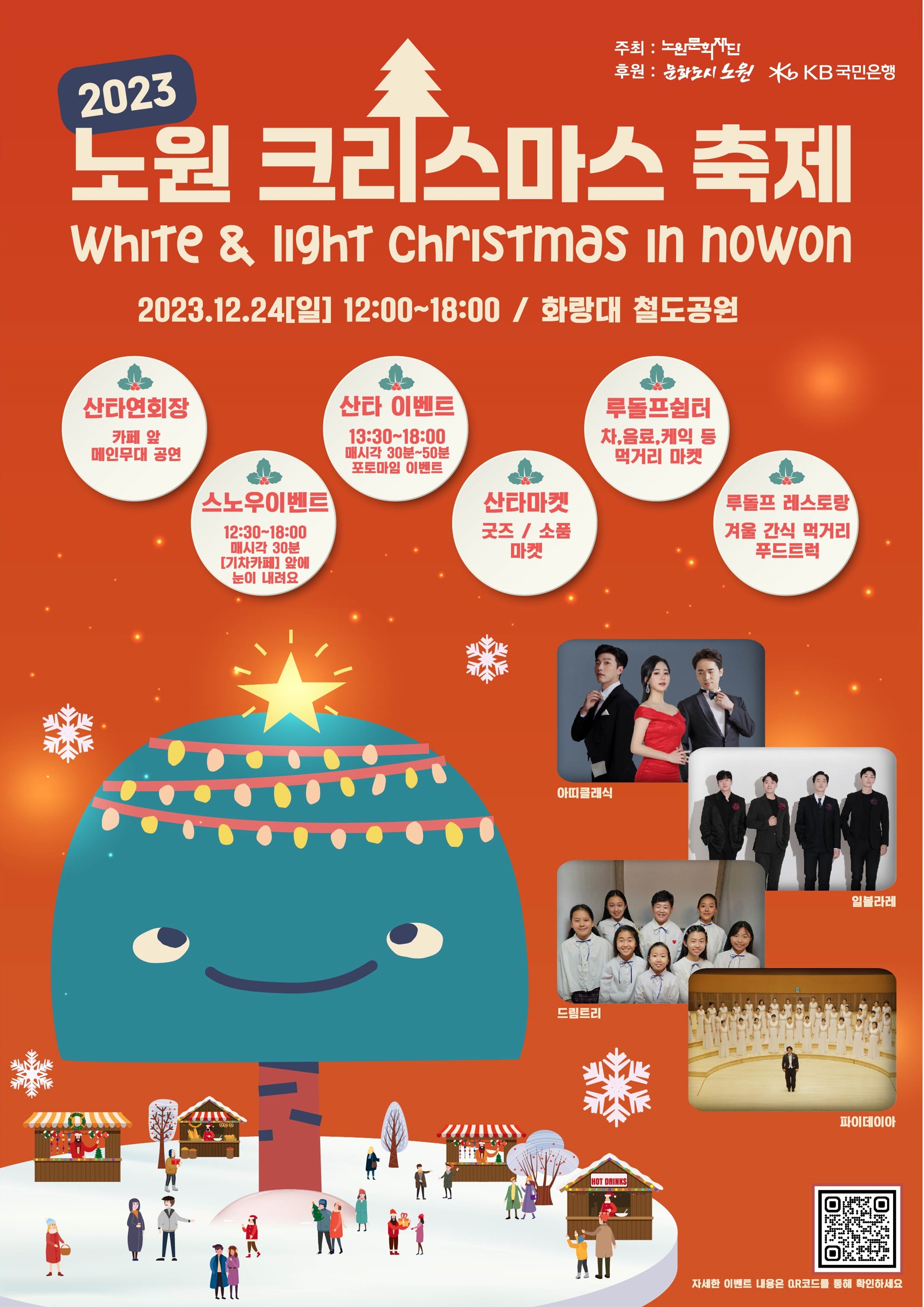 구는 크리스마스를 맞아, 멀리 나가지 않아도 집 가까운 곳에서 온 가족이 함께 즐거운 시간을 보낼 수 있도록 <2023 노원 크리스마스 축제(White&Light Christmas in Nowon)>를 기획했다.