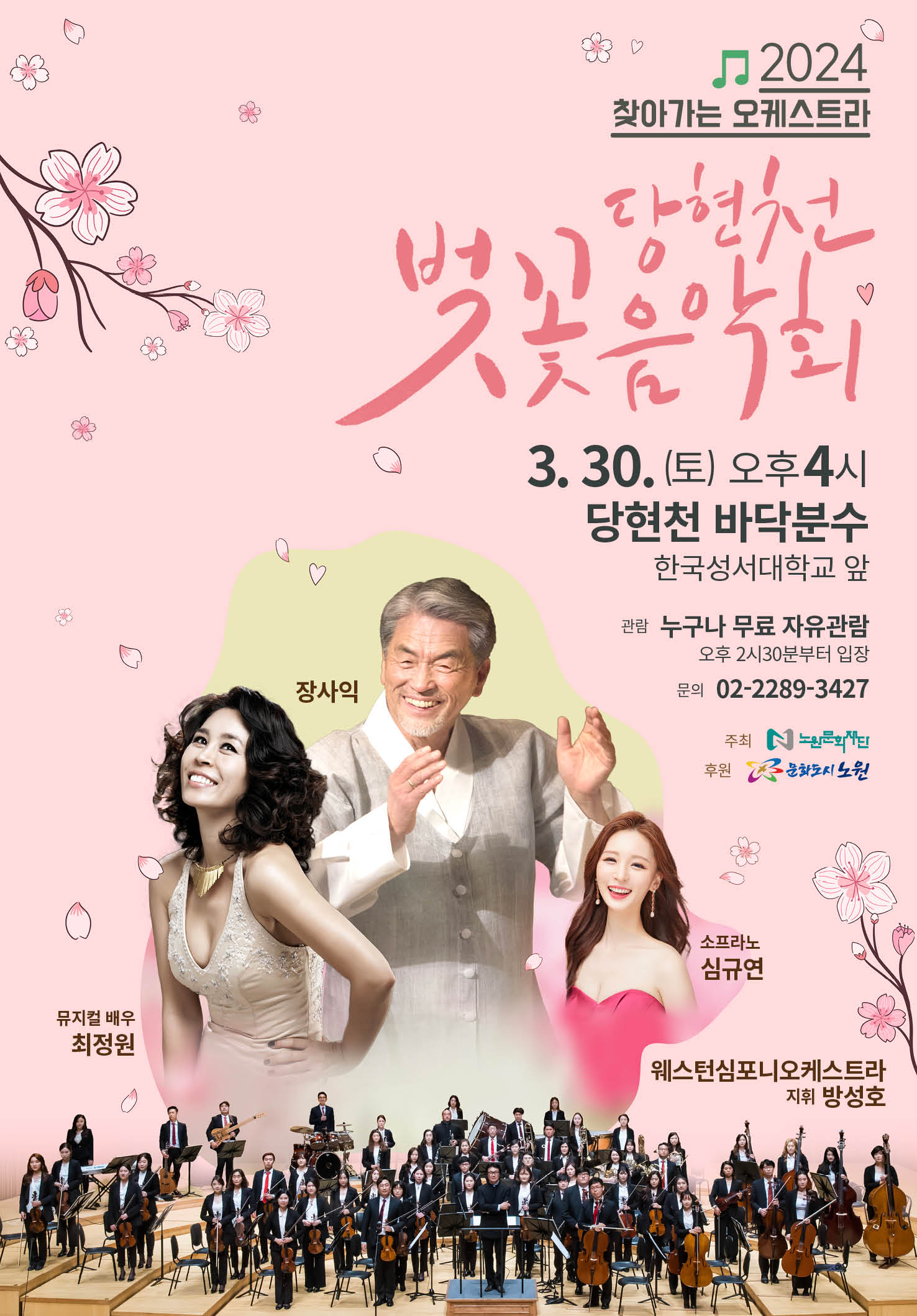 서울 노원구(구청장 오승록)가 오는 30일 토요일 오후 4시 「2024년 당현천 벚꽃음악회」를 개최한다고 밝혔다.