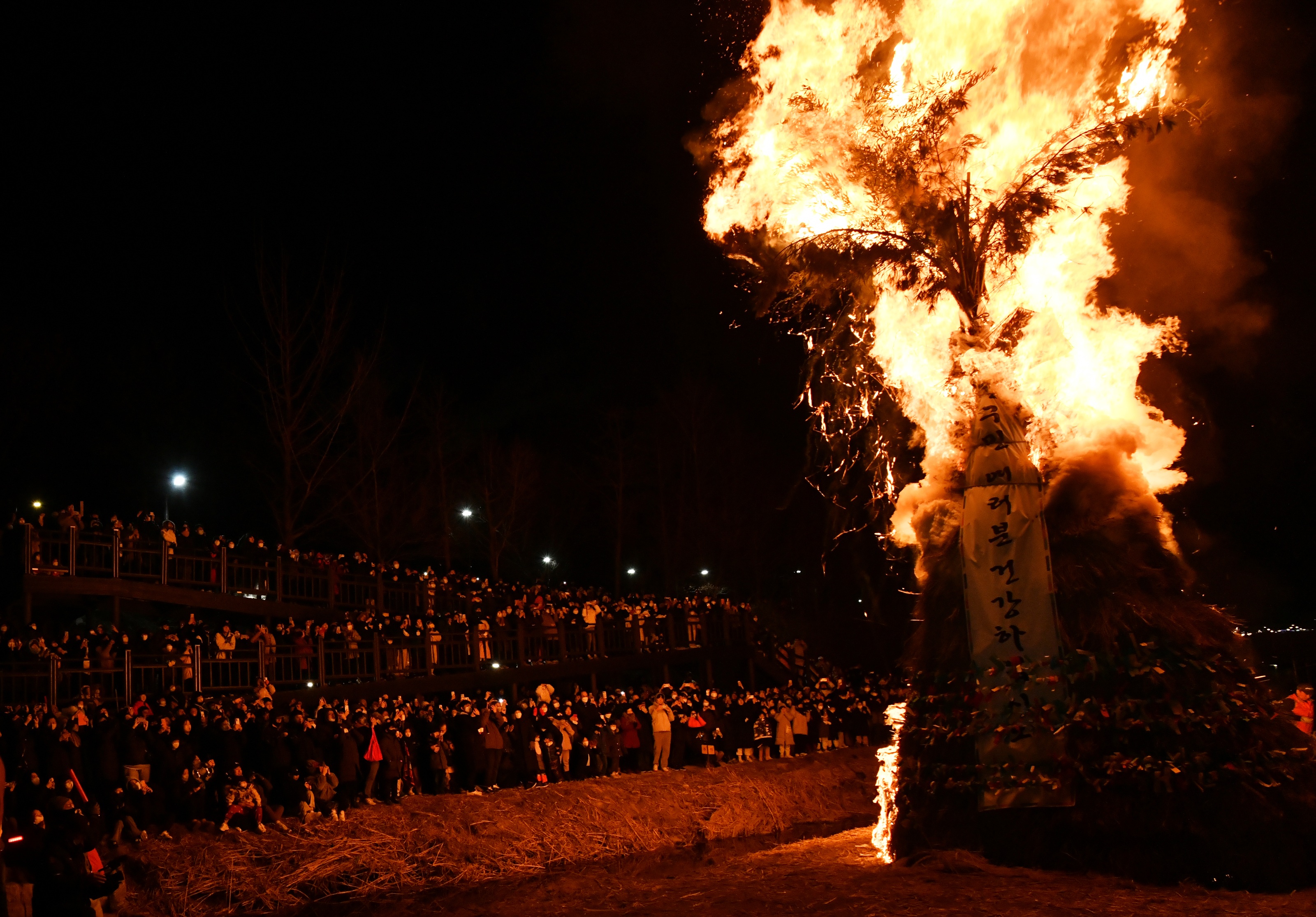 – 팔도대항 윷놀이, 민속놀이, 각설이, 낙화놀이, 쥐불놀이 다 즐기고 “달집 태우기”로 화룡점정