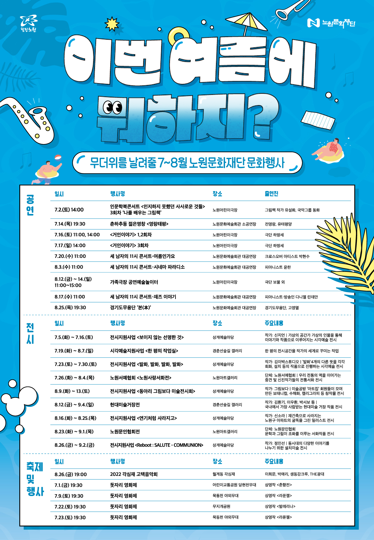 ✨더운 여름, 무더위를 날려줄 노원문화재단의 7~8월 문화행사를 소개합니다✨