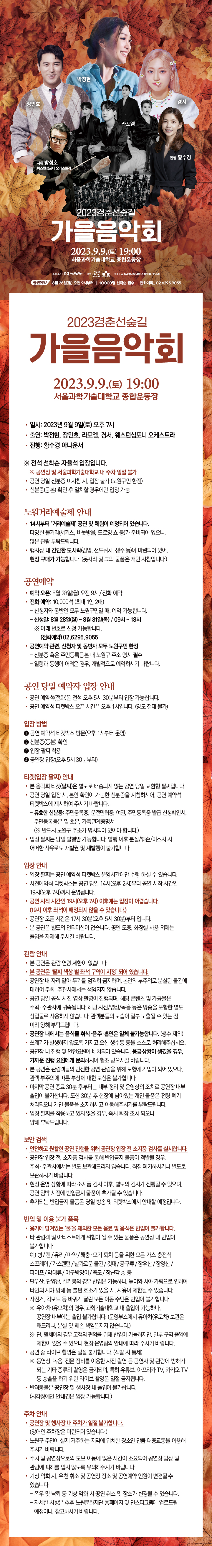* 공연 시간 : 2023.09.09. (토) 19:00 ~ 21:00