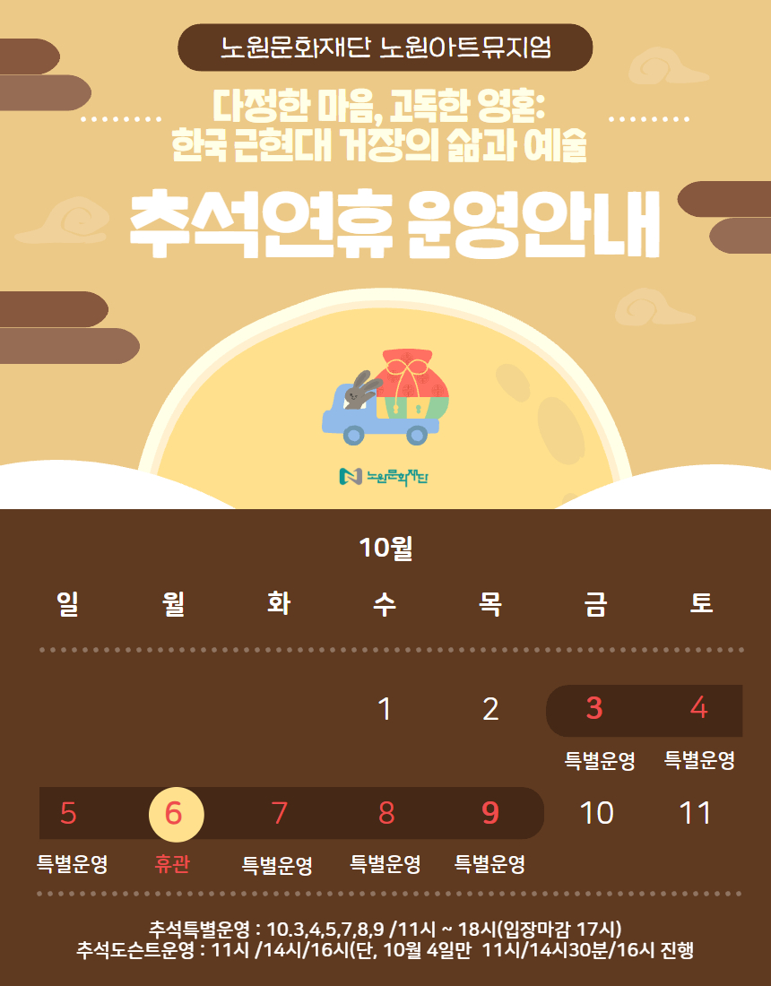 🎟 휴관일: 10/6(월) 추석 당일