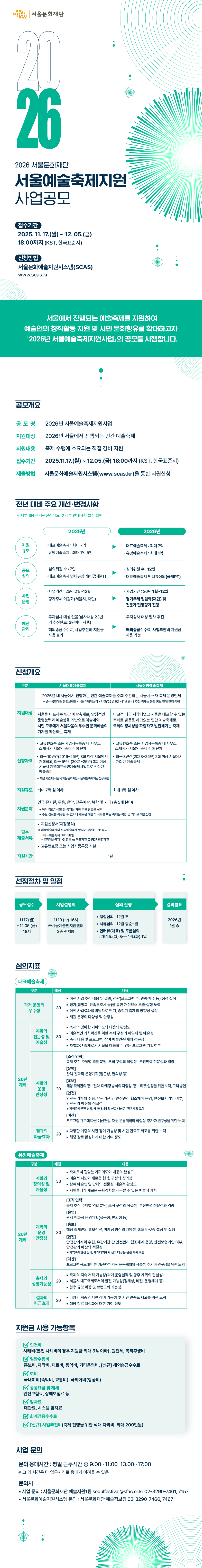 타기관소식 전문예술인신청 전문예술단체신청 생활예술단체신청 노원구소식 타기관소식 노원행사안내 노원문화공간 [서울문화재단] 서울예술축제지원 사업공모 2025.11.20 55 현재 URL 복사 블로그 바로가기 공고 바로가기(클릭) 이전글 [한국예술인복지재단] 예술인 임대주택 [그루(Grew)하우스 서대문] 입주자 모집 안내 다음글 [서울문화재단] 서울 커넥트 스테이지 통합공모 (전통, 무용, 연극, 음악) 목록